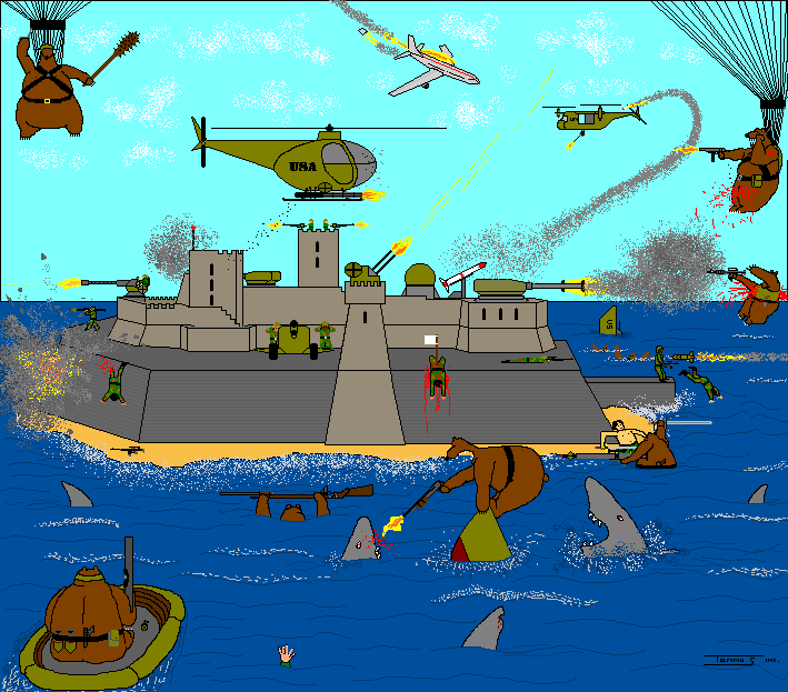 Inimkonna viimane vastupanupunkt on raskelt kindlustatud kindlussaar. Kas karudel õnnestus see murda? Ei tea, ei mäleta.